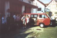 Doch eines dieser geliehenen Fahrzeuge erwiß sich später als verhext. Schon nach dem ersten Tankstopp wollte es nicht mehr anspringen - der Anlasser gab keinen Ton mehr von sich und so musste es für die restliche Fahrt angeschoben werden. Doch mit dem verflixten Ding kam es noch viel schlimmer, denn kurz nach Hamburg ließ sich einfach mitten auf der Autobahn kein anderer Gang mehr einlegen. Also mussten alle auf dem Standstreifen anhalten und die Fahrer versuchten das Problem zu beheben. Und wirklich schafften sie es auch, denn wie sich herausstellte hatte sich die Verbindungsschraube zwischen Schalthebel und Schaltgestänge unter dem Fahrzeug gelöst, war aber glücklicherweise in das darunter hängende Reserverad gefallen und konnte somit wieder leicht montiert werden. Nach diesem unfreiwilligen Boxenstopp ging es dann endlich weiter zur Jugendherberge.